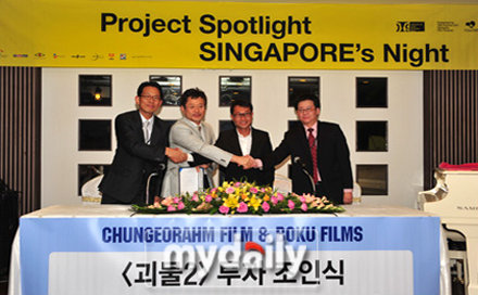 《汉江怪物》制作公司青于蓝与新加坡一家电影公司举行了投资签约仪式。根据这份协议,《汉江怪物》将获得500万美元的投资。影片将预计耗资1760万美元,这将近是第一部《汉江怪物》的成本的3倍,第一部的投资仅为600万美元。毋庸置疑,这次大部分的投资将花费在3D拍摄技术方面,显然韩国电影也看好了3D流行风。据悉与青于蓝签订协议的新加坡电影公司曾在2005年以电影《TheMaid》刷新了新加坡最高票房纪录。如今曾制作韩国最卖座影片《汉江怪物》的青于蓝与曾制作新加坡最卖座影片的电影公司合作,让许多人都对《汉江怪物2》充满了期待。
