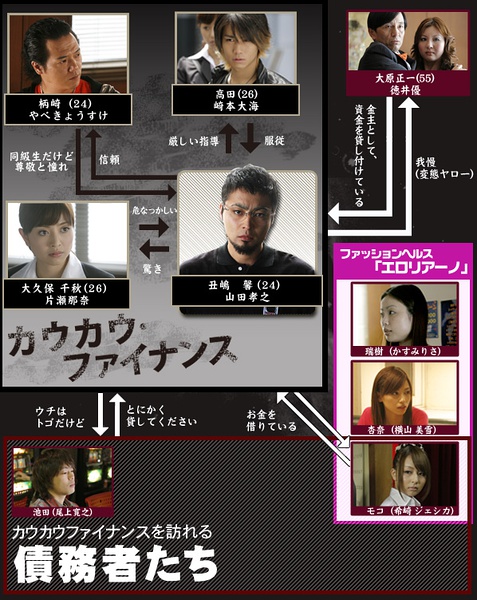 曾经当过AV女优的大久保千秋(片濑那奈饰)为了让故乡的父母安心,决定走上地面,寻找一份正常的职业。谁知她阴差阳错加入了名为CowCowFinance的高利贷公司。公司社长丑岛馨(山田孝之饰)头脑精明,冷酷无情,对于欠债者有如鳄鱼一般死死咬住,决不松口。更有柄崎(やべきょうすけ饰)和高田(崎本大海饰)两位得力助手相助,其事业蒸蒸日上。虽然高利贷属于违法行当,但在当今这个物欲横流、奢靡浮华的社会,无论男女老少还是来自各个阶层行业的族群,全都为了金钱、名誉、地位丧失自我。内心善良的千秋不得不目击丑岛诉诸暴力、逼良为娼、践踏尊严的种种恶行。然而在金钱当道的时代,这一切又是谁之错?