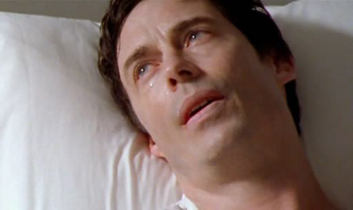 剧情是男主角事业有成,家庭美满,在过完40岁生日以后的第二天,在医院进行一次普通的肠道透镜检查,结果遭遇医疗事故,气泡栓塞,变成植物人,最终死去。这是客观剧情。看起来这和恐怖杀人医院毫无关系。可是我们明明看到男主角在医院经历了种种恐怖历程,这是导演的故意,直到片子的最后,黑人护士在剪断男主角的手指和脚趾的的时候,男主角的家属进入他的病房,包括他的弟弟、妻子,儿子,女儿,我们才知道,原来片子的一直在描述的,是男主角的大脑中的世界。